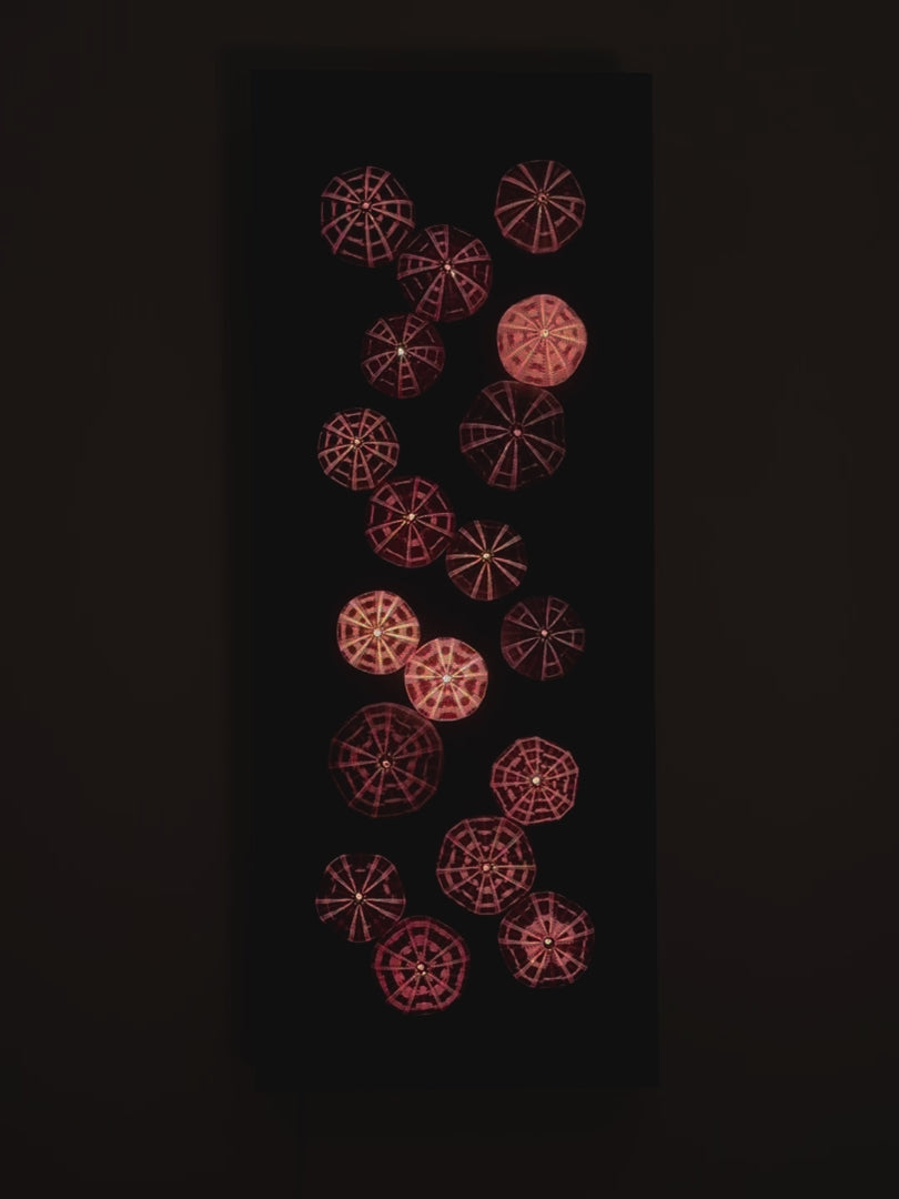 LUMINOUS No. 11 – No. 11 in our Luminous Sea Urchin wall decoration series. It brings a warm, shifting light and peaceful tranquility to your wall. During the day it’s an intricate graphic pattern and when evening comes it sends out waves of comforting light into your room. Bright or dim, slow pulse or quick, intense or calm, blue, white, red, orange, yellow – just as you command it. We uniquely customize the light flow for each piece but once it's on your wall there’s literally hundreds of different patterns and colors for you to operate with. Find one that suits your mood for the hour and change it whenever you want.
