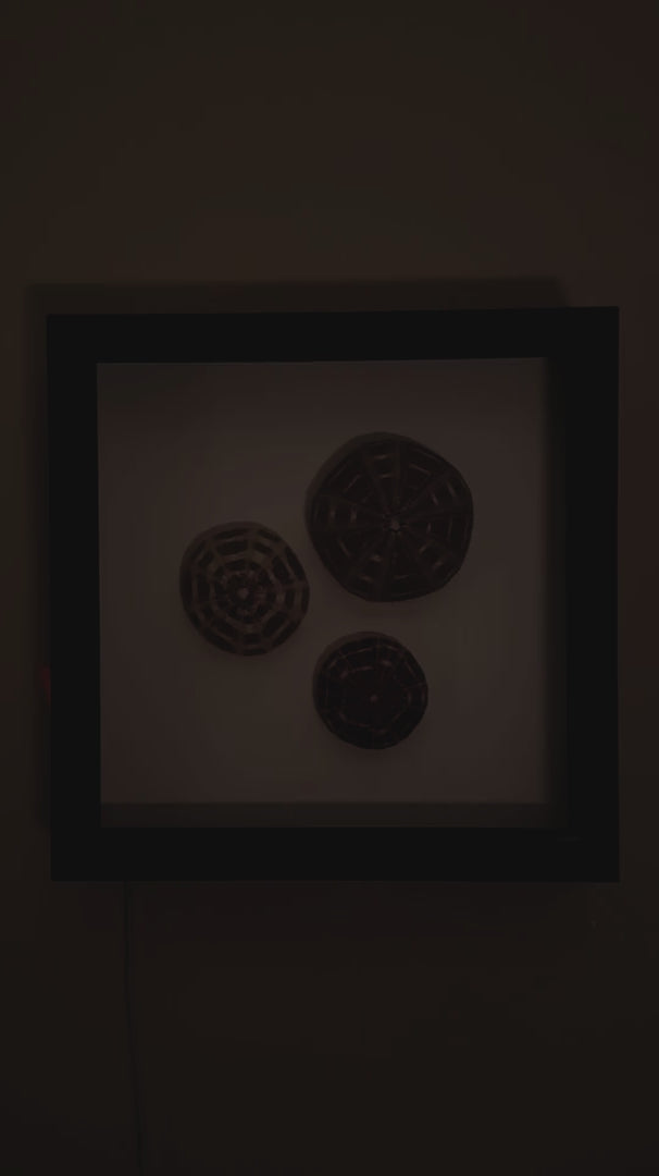 LUMINOUS No. 6 – No. 6 in our Luminous Sea Urchin wall decoration series. It brings a warm, shifting light and peaceful tranquility to your wall. During the day it’s a graphic trio pattern and when evening comes it sends out waves of comforting light into your room. Bright or dim, slow pulse or quick, intense or calm, blue, white, red, orange, yellow – just as you command it. We uniquely customize the light flow for each piece but once it's on your wall there’s literally hundreds of different patterns and colors for you to operate with. Find one that suits your mood for the hour and change it whenever you want.