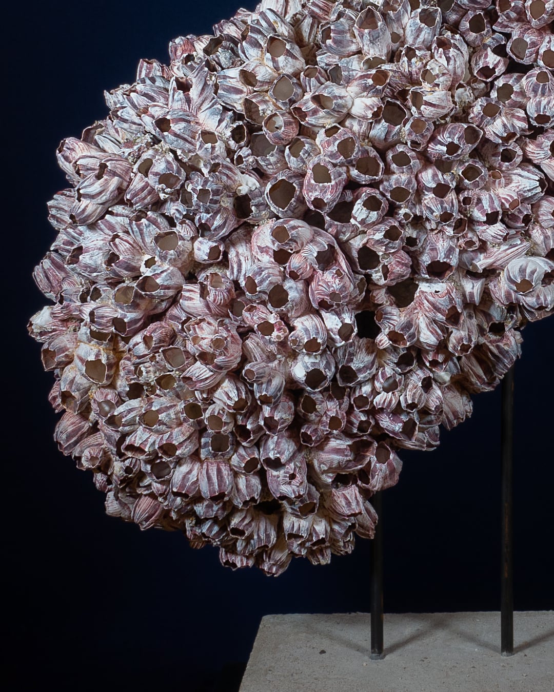 Two sided sculpture with barnacles, Swedish oysters and dove shells.