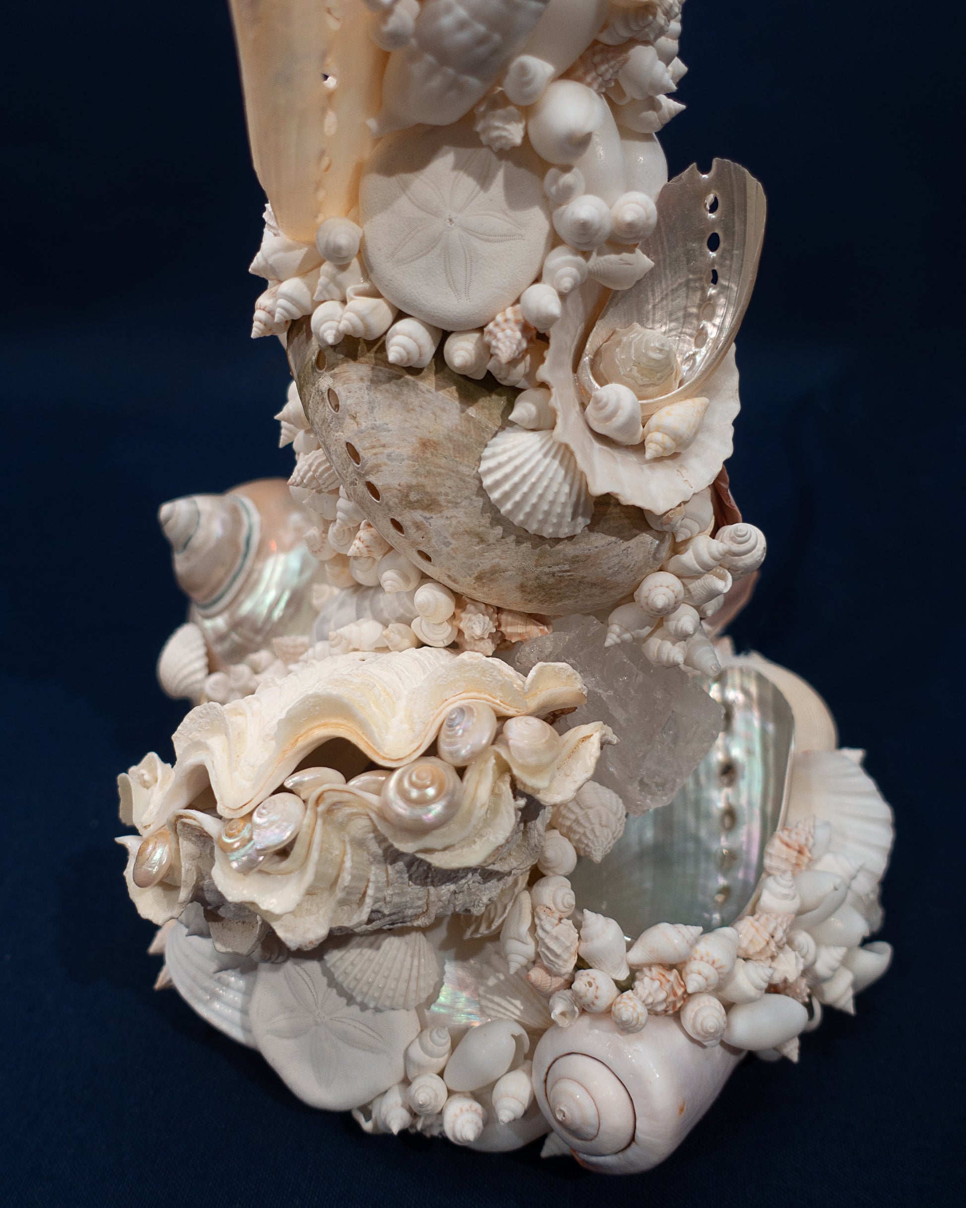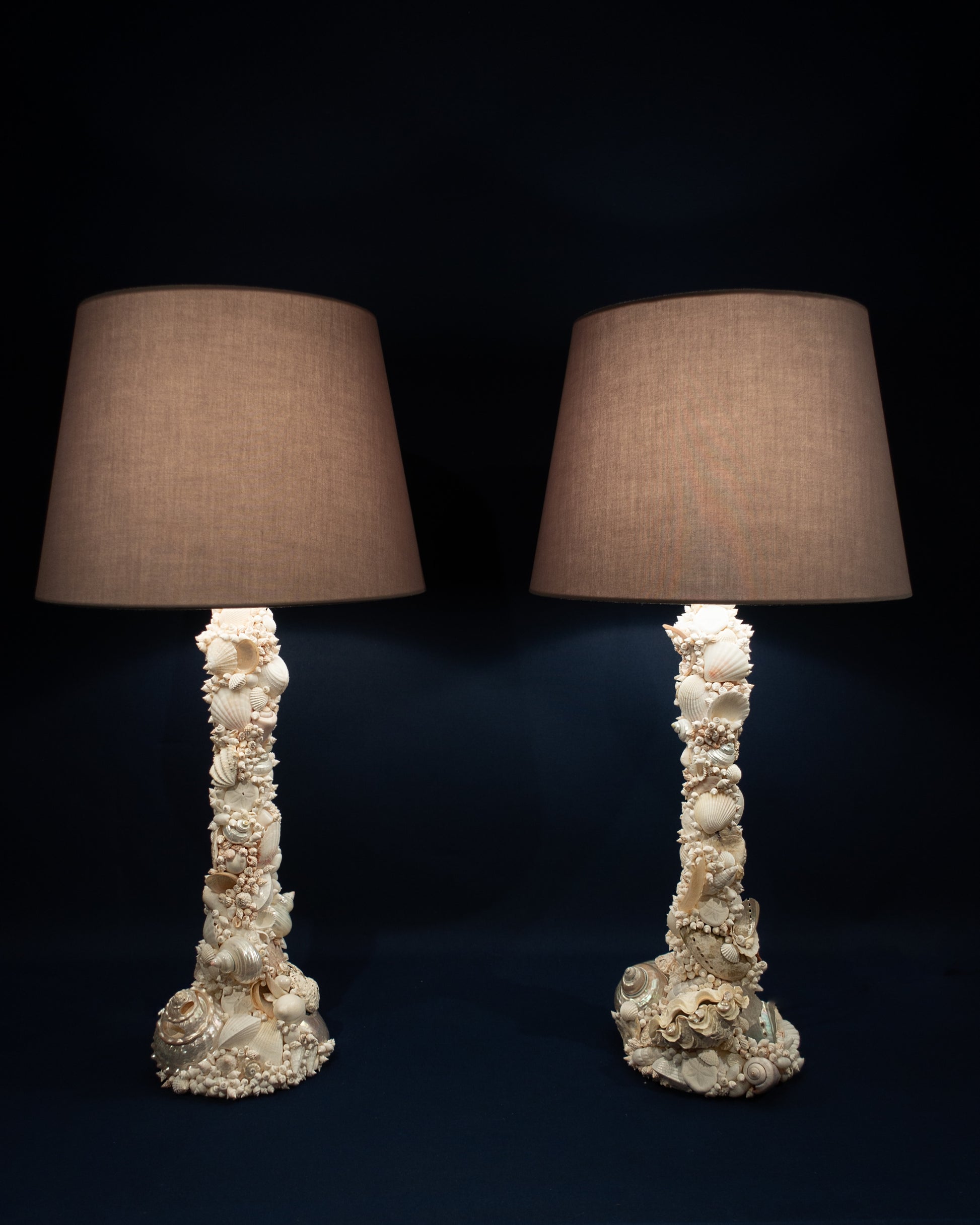 Pair of table lampsAbalones, polished pearl turban, scallops, clams and cockles, sand dollars, ceriths, etc.